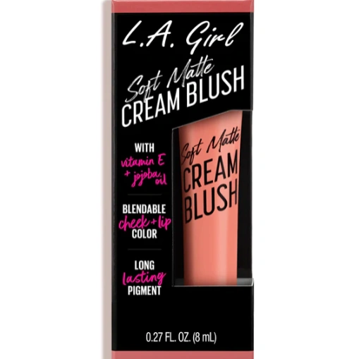 L.A. Girl Soft Matte Cream Blush is a lightweight, creamy gel-like blush that delivers a natural pop of color with a soft matte finish. Its buildable, long-lasting formula blends easily on cheeks (and even lips) while hydrating with jojoba seed oil and vitamin E for a smooth, comfortable wear throughout the day.